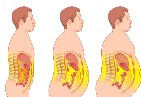 Dr. Yosua : Pertama, Anda harus tahu, bahwa semakin buncit perut Anda, Anda akan mengalami yang namanya penambahan lemak viseral (visceral fat). Fungsi lemak viseral dalam tubuh kita itu melindungi organ vital pada bagian perut. Tapi, yang jadi masalah ketika jumlahnya terlalu banyak, maka Anda akan melihat gambaran organ yang sulit bekerja akibat tertutup lemak ini.
